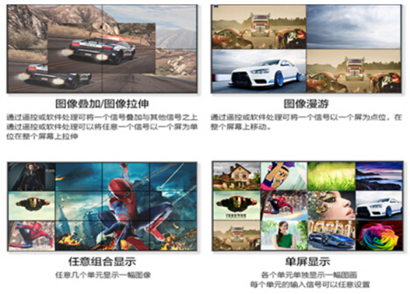 显示单元采用独立的模块化的内置图像处理模块,与液晶面板独立组合。当内置图像处理单元出现故障时,可迅速更换整个模块,迅速恢复系统,缩短故障时间。画面任意拼接组合灵活的拼接方式,可以满足我们对超大画面的追求。对于视频监控和生产调度,液晶拼接已经逐渐替代了传统的DLP、PDP,成为今后的市场主流。